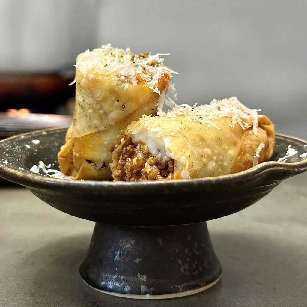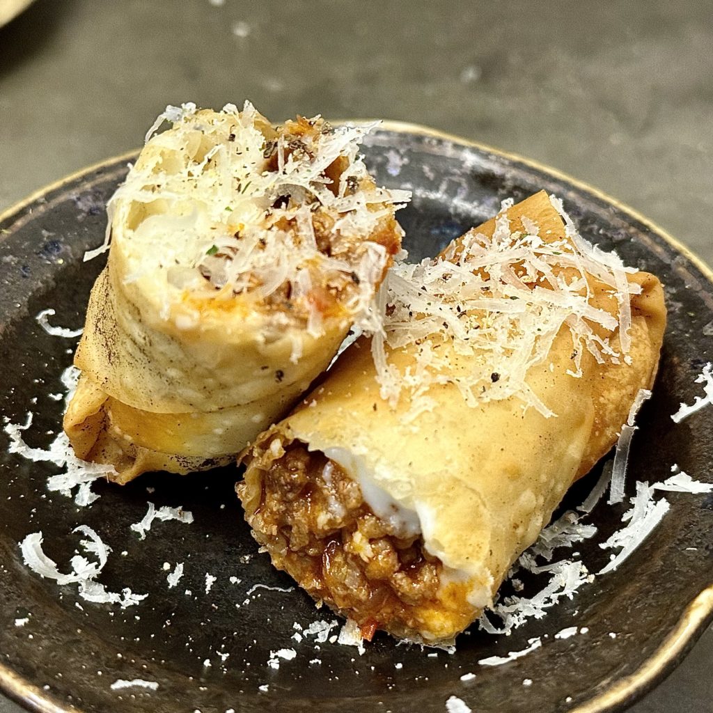 イタリアンが好きであればいくらでも食べられそうな、ミートソースとベシャメルソースを包んだ創作春巻き。パリッとした生地の中から、ミートソースの味わいが溢れ出してきて絶品です。
