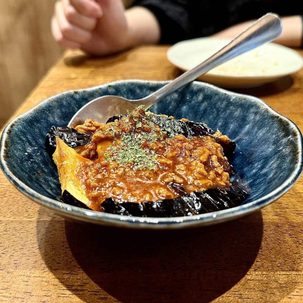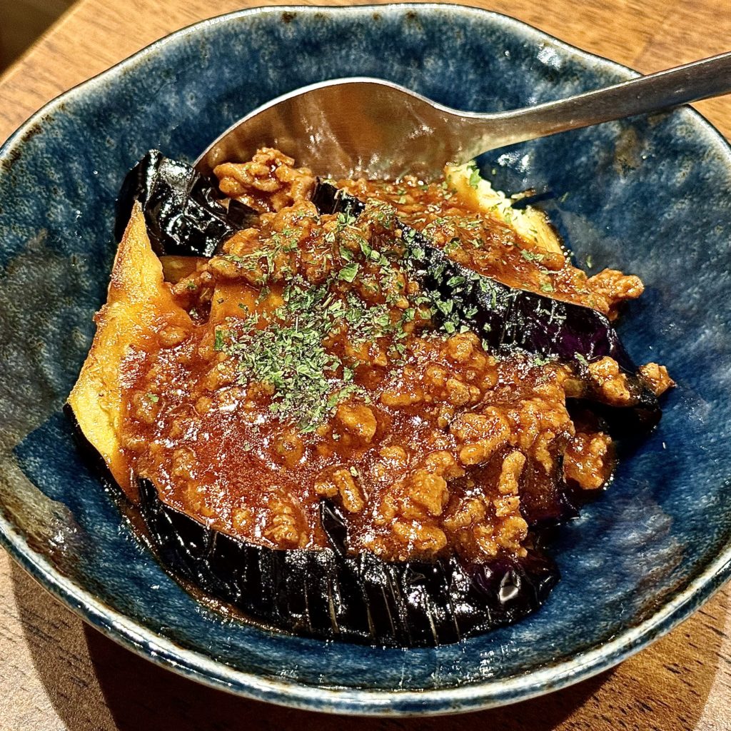ボロネーゼソースをふんだんにかけた、油を吸った揚げなす。ボロネーゼの甘味と、ジュワッと溢れ出す油の香りや茄子の味が堪りません!